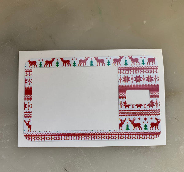 This decal has a white background and is adorned with characters reminiscent of your favorite Christmas Sweater!